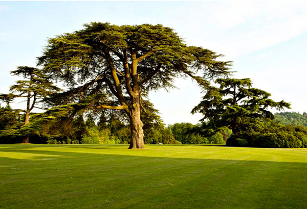 Hundreds of cedar trees, planted over 200 hundred years ago, are among the many trees on the grounds. Some were grown from seedlings given to the 1st Earl of Carnarvon by a cousin, the Earl of Pembroke.Tree species include non-native and native English species, such as this Weeping Beech (Fagus sylvatica "pendula").